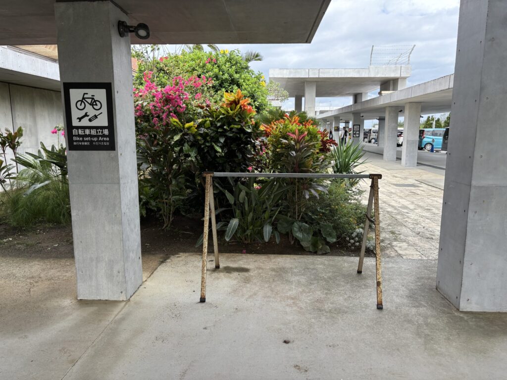 飛行機で輪行をしてきた方などが、ここでロードバイクやさまざまな自転車を組み立てるのに、用意されたスペースです。ちなみに、自転車をレンタルするところのすぐ横にあります。それと、組み立てに必要な整備工具や空気入れなどが、無料で貸してもらえるので、「みやこ下地島空港」のインフォメーションのカウンターで、事前予約なしでOKです。僕が、もしまた宮古島に行く事があれば、自分の愛車のロードバイクを輪行して、島を一周してみたいと思っています。
